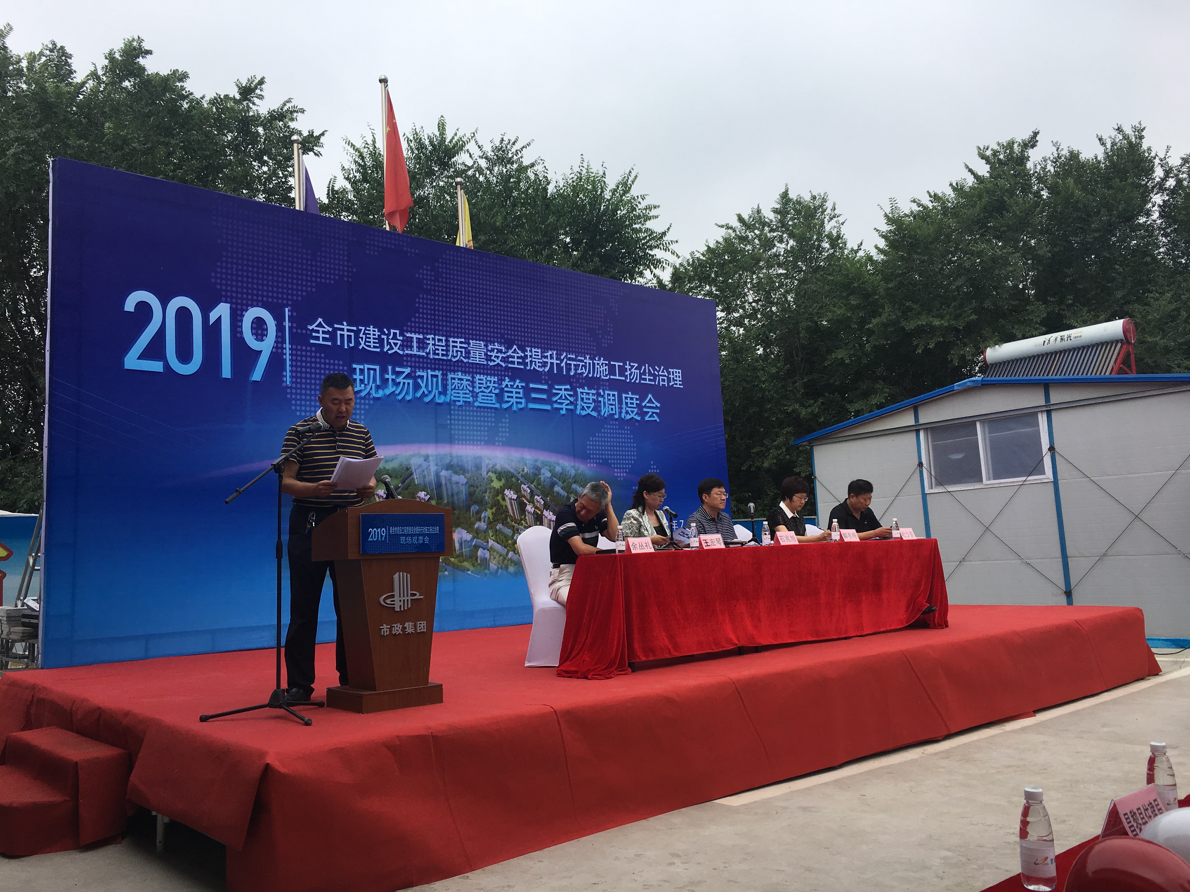 2019年7月9日上午,全市建設(shè)工程質(zhì)量安全提升行動、施工揚塵治理現(xiàn)場觀摩暨第三季度調(diào)度會在和信基業(yè)旗下市政建設(shè)集團有限公司承建的碧桂園·首府項目工地召開。市住建局黨組書記,局長石兆旭等相關(guān)單位負責人蒞臨本次觀摩會。