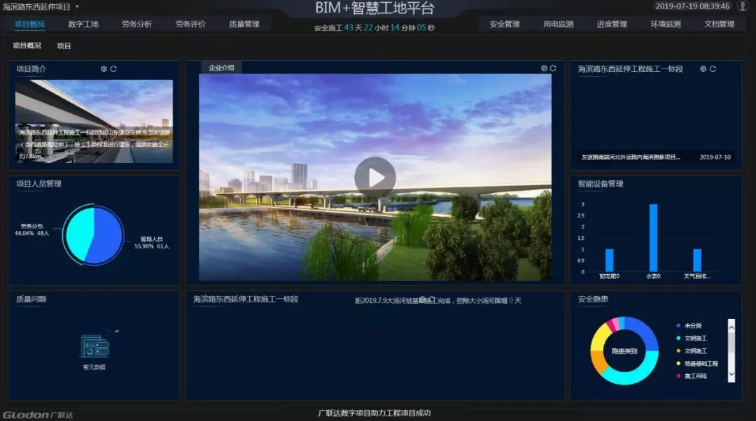 近日,海濱路東西延伸工程施工一標(biāo)段智慧工地建設(shè)取得了階段性成果,項(xiàng)目已部署了智慧工地質(zhì)量管理系統(tǒng)、安全管理系統(tǒng)、勞務(wù)管理系統(tǒng)、斑馬進(jìn)度、智能電表、智能水表檢查等智能監(jiān)控系統(tǒng)。