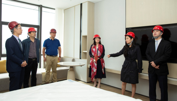 和信基業(yè)地產(chǎn)總監(jiān)韓利對(duì)現(xiàn)場(chǎng)施工情況和施工進(jìn)度做了詳細(xì)介紹,葉總裁對(duì)現(xiàn)場(chǎng)施工秩序和施工質(zhì)量給予了高度肯定,并表示:秦皇島和信基業(yè)項(xiàng)目是目前萬(wàn)怡酒店項(xiàng)目中硬件配置最高的,希望這個(gè)項(xiàng)目成為萬(wàn)豪酒店集團(tuán)在大中華區(qū)特許經(jīng)營(yíng)萬(wàn)怡酒店品牌的標(biāo)桿項(xiàng)目。