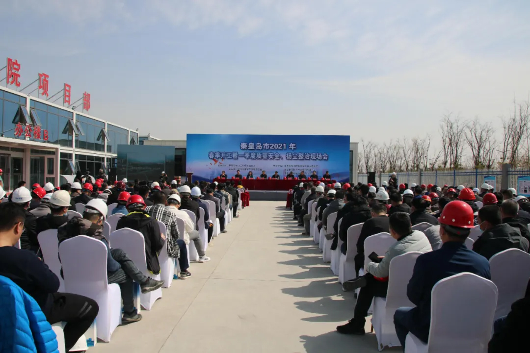 2021年3月25日上午,由秦皇島市住房和城鄉(xiāng)建設(shè)局、秦皇島經(jīng)濟(jì)技術(shù)開發(fā)區(qū)管理委員會聯(lián)合主辦,秦皇島市政建設(shè)集團(tuán)、秦皇島經(jīng)濟(jì)技術(shù)開發(fā)區(qū)城鄉(xiāng)建設(shè)局、秦皇島市政府投資項目代建中心三方承辦的秦皇島市2021年春季開工暨一季度質(zhì)量安全、揚(yáng)塵整治現(xiàn)場會在和信基業(yè)旗下市政建設(shè)集團(tuán)承建項目:市開發(fā)區(qū)北醫(yī)三院施工現(xiàn)場隆重舉行。會議的主要目的是鞏固質(zhì)量安全、揚(yáng)塵整治成果,結(jié)合全市房屋建筑和市政工程建設(shè)實際,組織開展的復(fù)工現(xiàn)場動員會。并通過現(xiàn)場經(jīng)驗交流、觀摩學(xué)習(xí)來提升質(zhì)量安全揚(yáng)塵整治水平。秦皇島市住建局總工程師吉海松、市場局及強(qiáng)市辦主任白寶英、市住建局調(diào)研員王宏琴、經(jīng)濟(jì)技術(shù)開發(fā)區(qū)住建局局長王滿成等領(lǐng)導(dǎo)出席了本次會議。