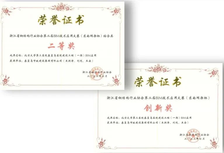 北醫(yī)三院項(xiàng)目鋼結(jié)構(gòu)工程參與了浙江省鋼結(jié)構(gòu)行業(yè)協(xié)會(huì)第二屆BIM技術(shù)應(yīng)用大賽(東南網(wǎng)架杯),并在眾多參賽作品中脫穎而出,斬獲綜合類(lèi)二等獎(jiǎng)及創(chuàng)新獎(jiǎng)的優(yōu)異成績(jī)。