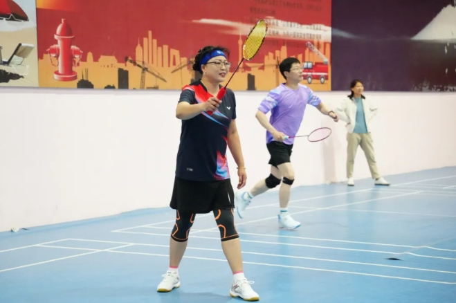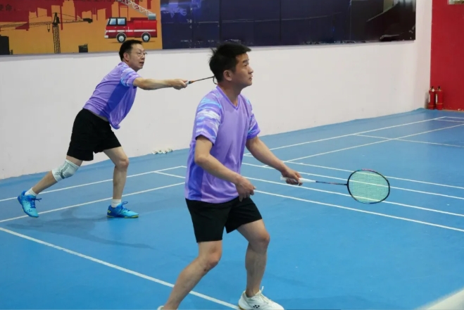 團(tuán)體比賽中,搭檔們默契配合,前場(chǎng)選手閃電般俯身截?fù),后?chǎng)選手預(yù)判落點(diǎn)凌空補(bǔ)位,每一次輪轉(zhuǎn)換位都激起膠地吱呀作響的摩擦聲,展現(xiàn)團(tuán)隊(duì)力量。