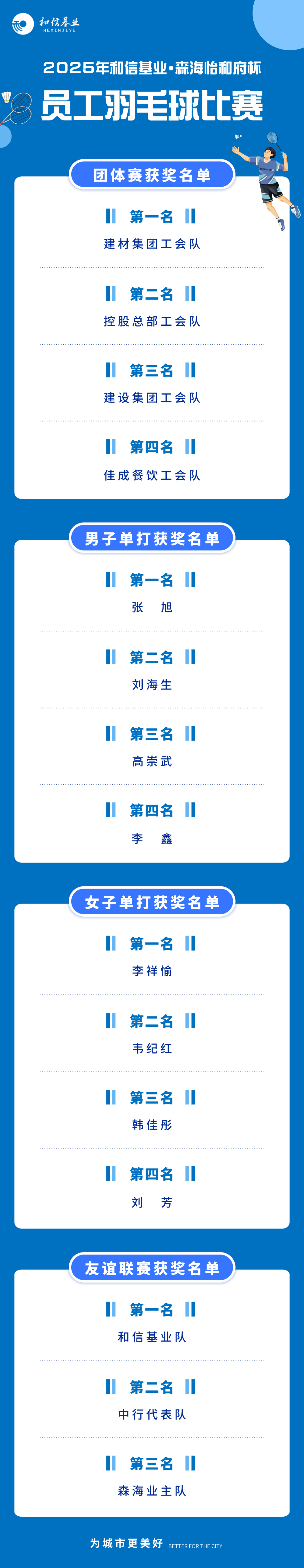 今天的比賽,我們以球會(huì)友、以賽促健,見(jiàn)證了拼搏的力量、團(tuán)隊(duì)的默契和友誼的升華。無(wú)論勝負(fù),每一位選手都用激情與汗水詮釋了體育精神,展現(xiàn)了和信基業(yè)人的昂揚(yáng)風(fēng)貌。